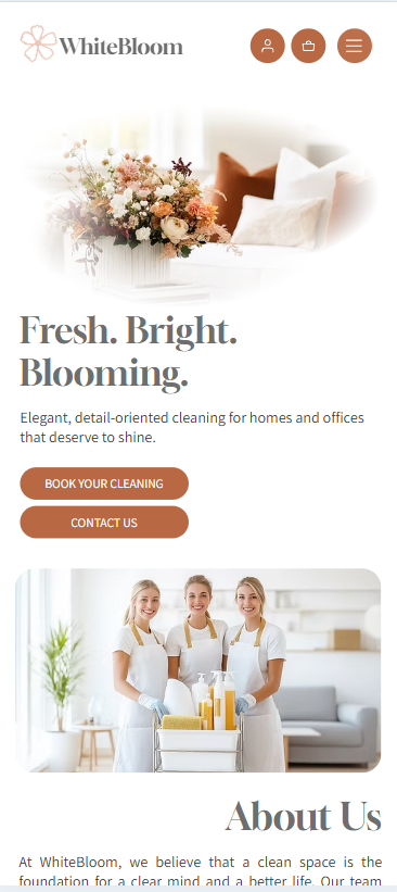 Bring sophistication and warmth to your cleaning business with WhiteBloom, a premium Wix Studio template designed for service providers who want to impress from the very first click.